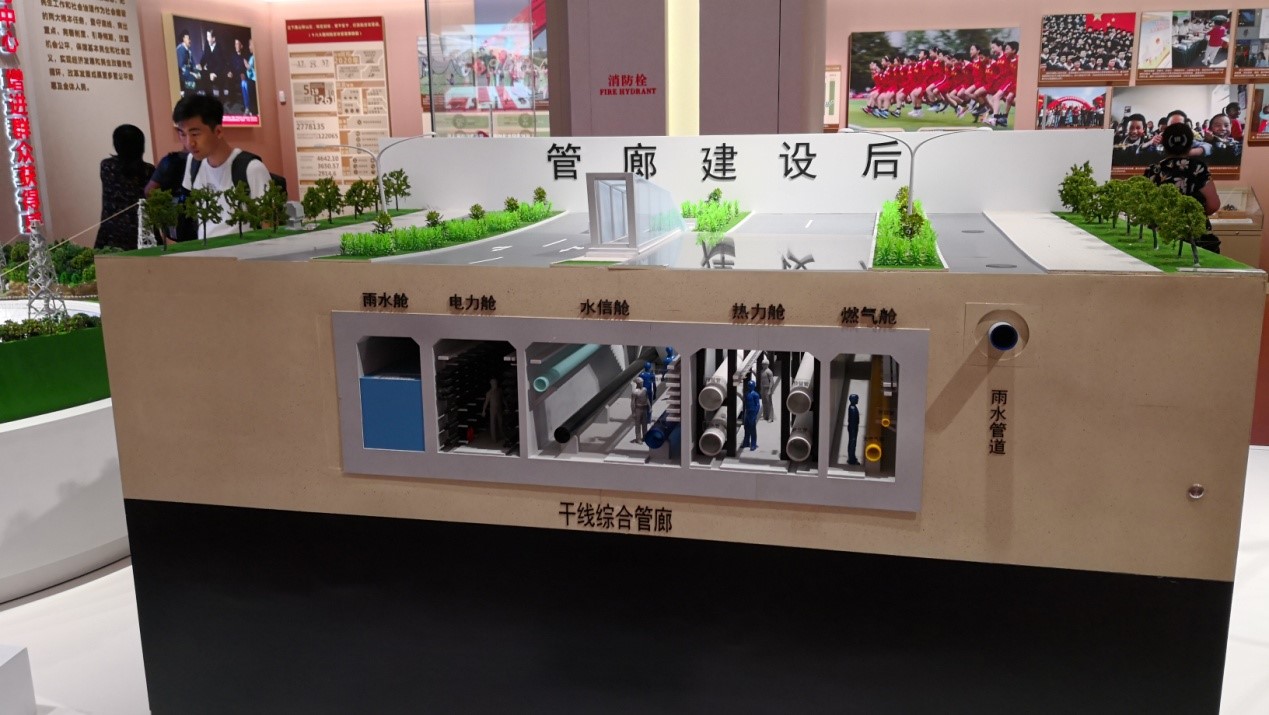 圖:展覽中的綜合管廊模型引發了支部黨員的興趣