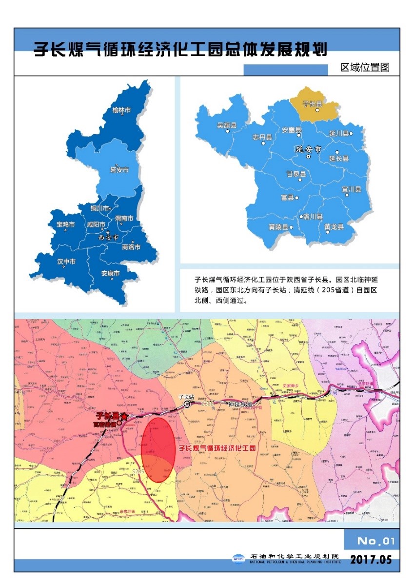 子長煤氣循環經濟化工園是延安綜合能源基地的重要組成部分。園區建設將充分利用子長縣豐富的煤炭和天然氣資源,統籌兼顧陜北地區資源和原料優勢,實現資源綜合利用和精深加工。以煤電化、煤油氣化雙輪驅動推動煤氣資源綜合利用,打造煤炭分級分質利用、煤電化一體化、熱解氣化一體化、煉油化工產業耦合集成等重點產品鏈,結合資源、市場、技術等因素,承接技術創新,形成產業聚集,打造產業上下游銜接流暢,產品交叉互供的國內高水平煤、油、氣、化、電一體化園區,形成延安市能源綜合加工利用的重要支撐。