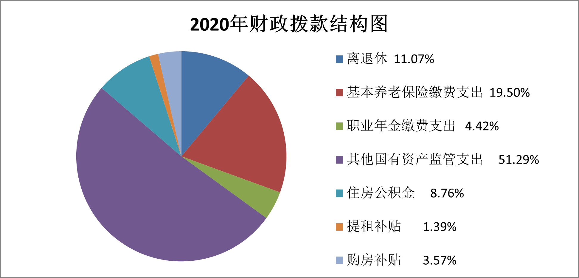 本年度財(cái)政撥款收入1610.30萬(wàn)元,其中:社會(huì)保障和就業(yè)支出563.51萬(wàn)元(事業(yè)單位離退休178.33萬(wàn)元、養(yǎng)老保險(xiǎn)繳費(fèi)支出313.94萬(wàn)元、職業(yè)年金繳費(fèi)支出71.24萬(wàn)元);資源勘探工業(yè)信息等支出825.90萬(wàn)元(其他國(guó)有資產(chǎn)監(jiān)管支出825.90萬(wàn)元);住房保障支出220.89萬(wàn)元(住房公積金141.06萬(wàn)元、提租補(bǔ)貼22.35萬(wàn)元、購(gòu)房補(bǔ)貼57.48萬(wàn)元)。本年度財(cái)政撥款較2019年減少218.67萬(wàn)元,主要是事業(yè)單位離退休費(fèi)的減少。