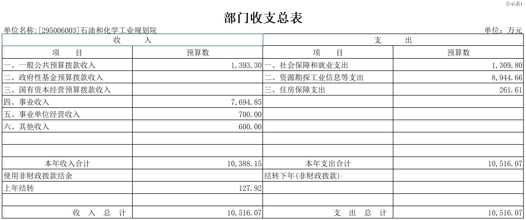 收入包括:一般公共預(yù)算撥款收入、事業(yè)收入、事業(yè)單位經(jīng)營(yíng)收入、其他收入、上年結(jié)轉(zhuǎn);支出包括:社會(huì)保障和就業(yè)支出、資源勘探工業(yè)信息等支出、住房保障支出。2022年部門收支總預(yù)算10516.07萬元。