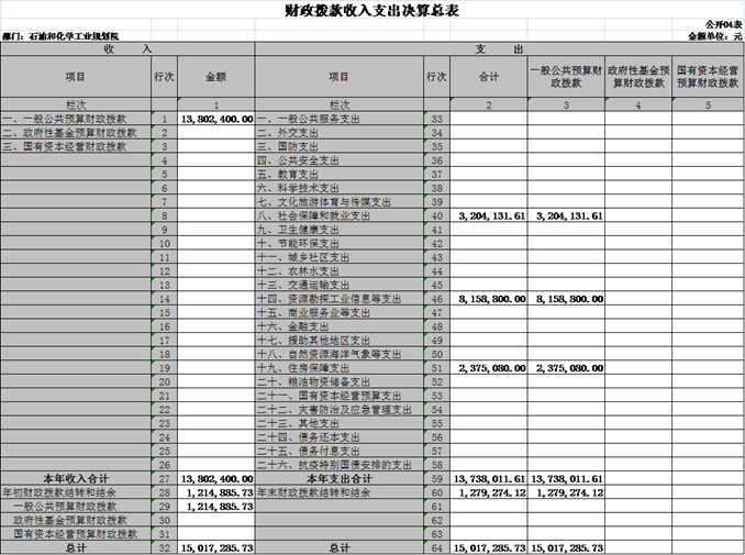 根據《中華人民共和國預算法》及其實施條例的相關規定規定,按照國資委2021年度所屬預算單位決算公開工作方案的要求,現將我院2021年度部門決算及相關內容公示如下:
