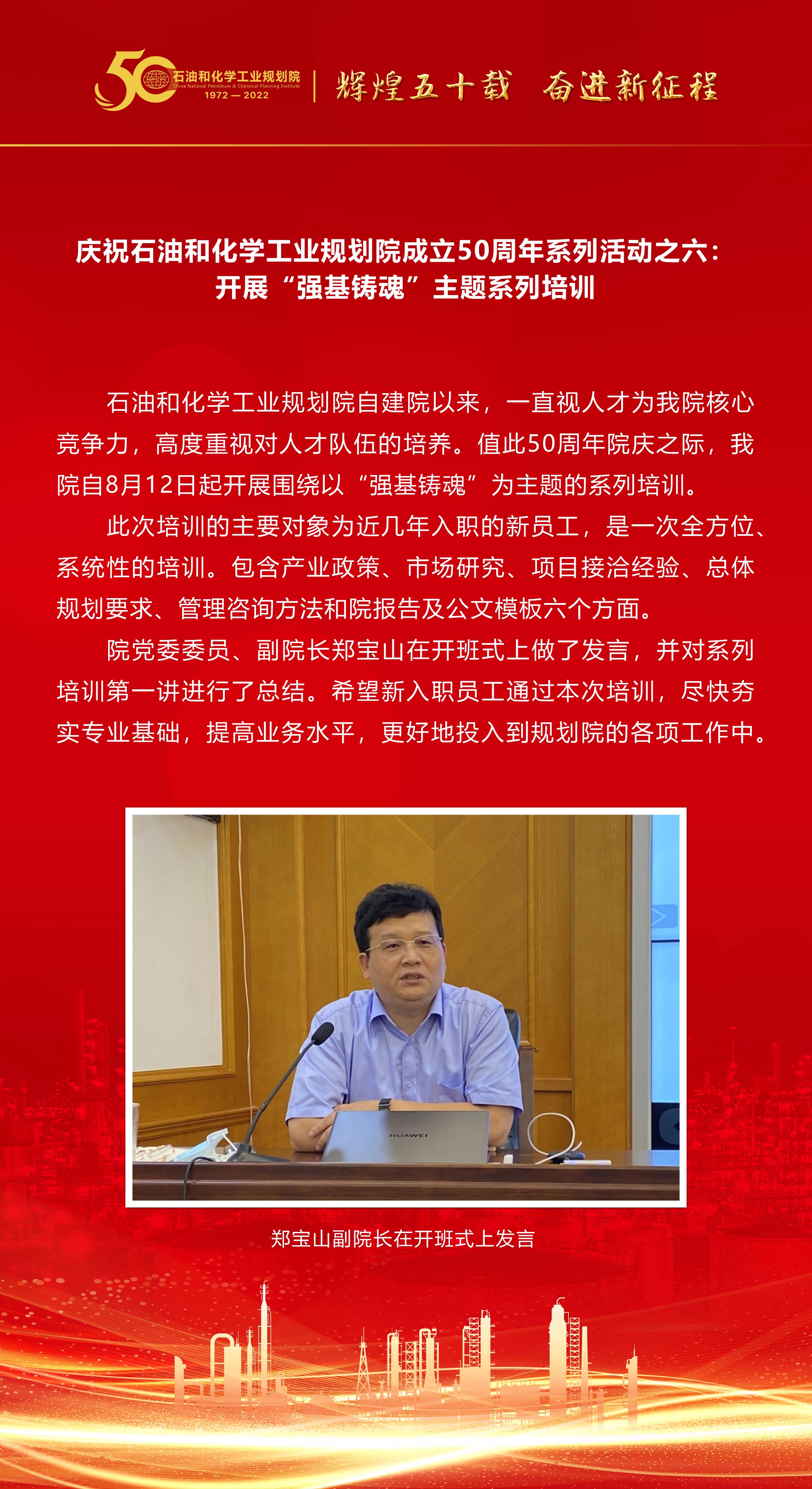 慶祝石油和化學工業規劃院成立50周年系列活動之六:開展“強基鑄魂”主題系列培訓