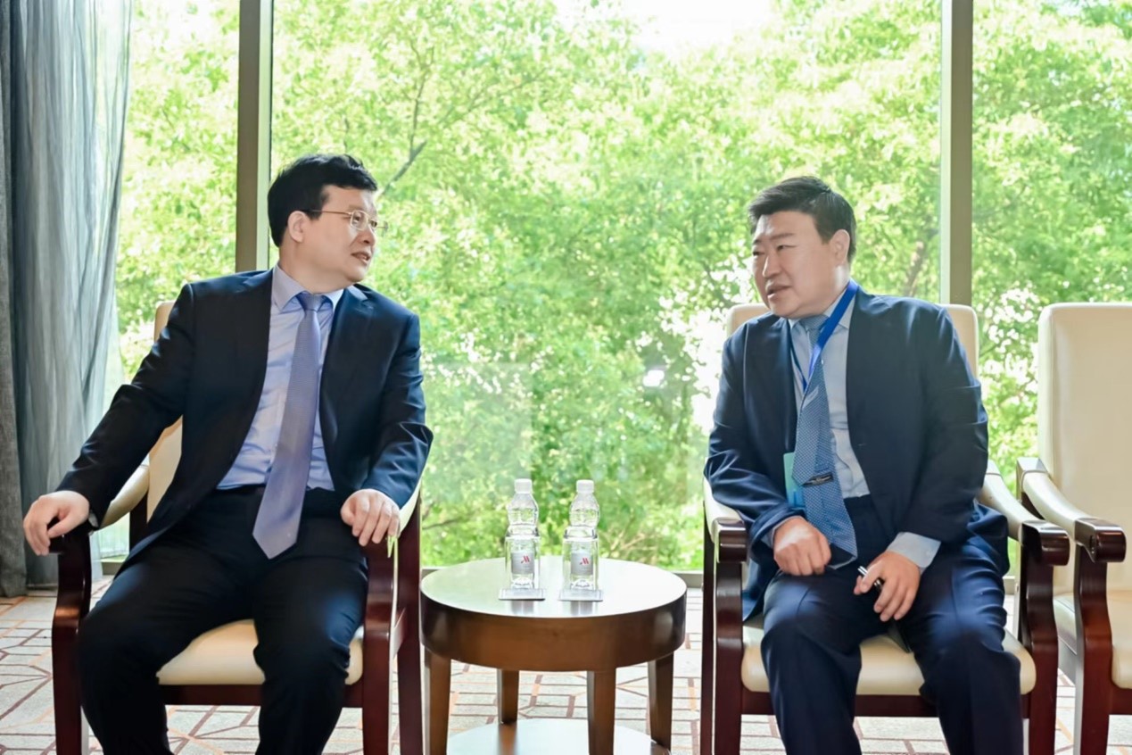 會前,院黨委委員、副院長鄭寶山與內蒙古自治區發展改革委黨組書記、主任龔明珠就行業發展情況交流探討。