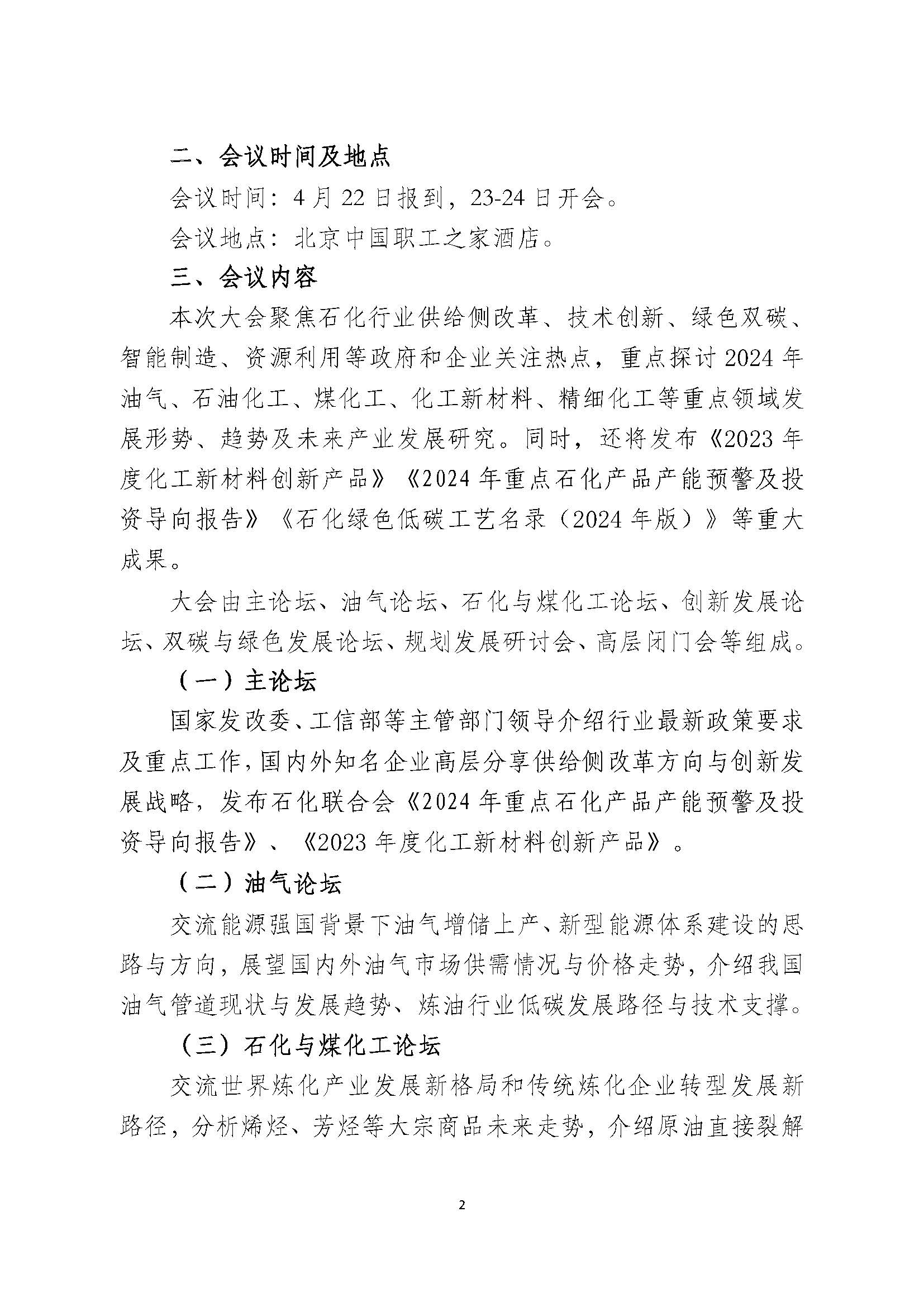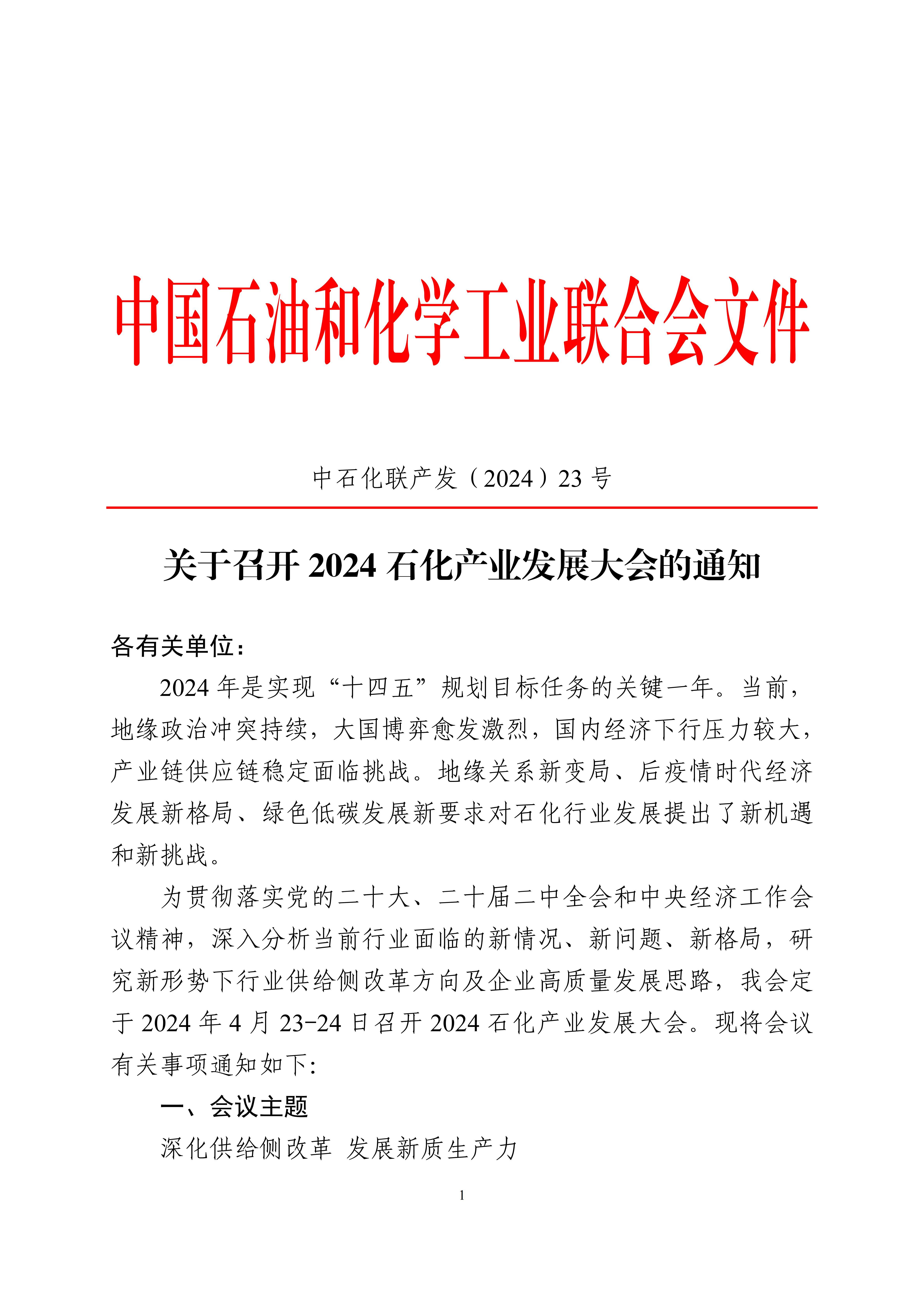 2024年4月23-24日,中國石油和化學工業(yè)聯(lián)合會將在北京召開《2024石化產(chǎn)業(yè)發(fā)展大會》,會議安排石油和化學工業(yè)規(guī)劃院組織“規(guī)劃發(fā)展研討會專場”,本次研討會主題是:石化化工領域之未來產(chǎn)業(yè)研究。