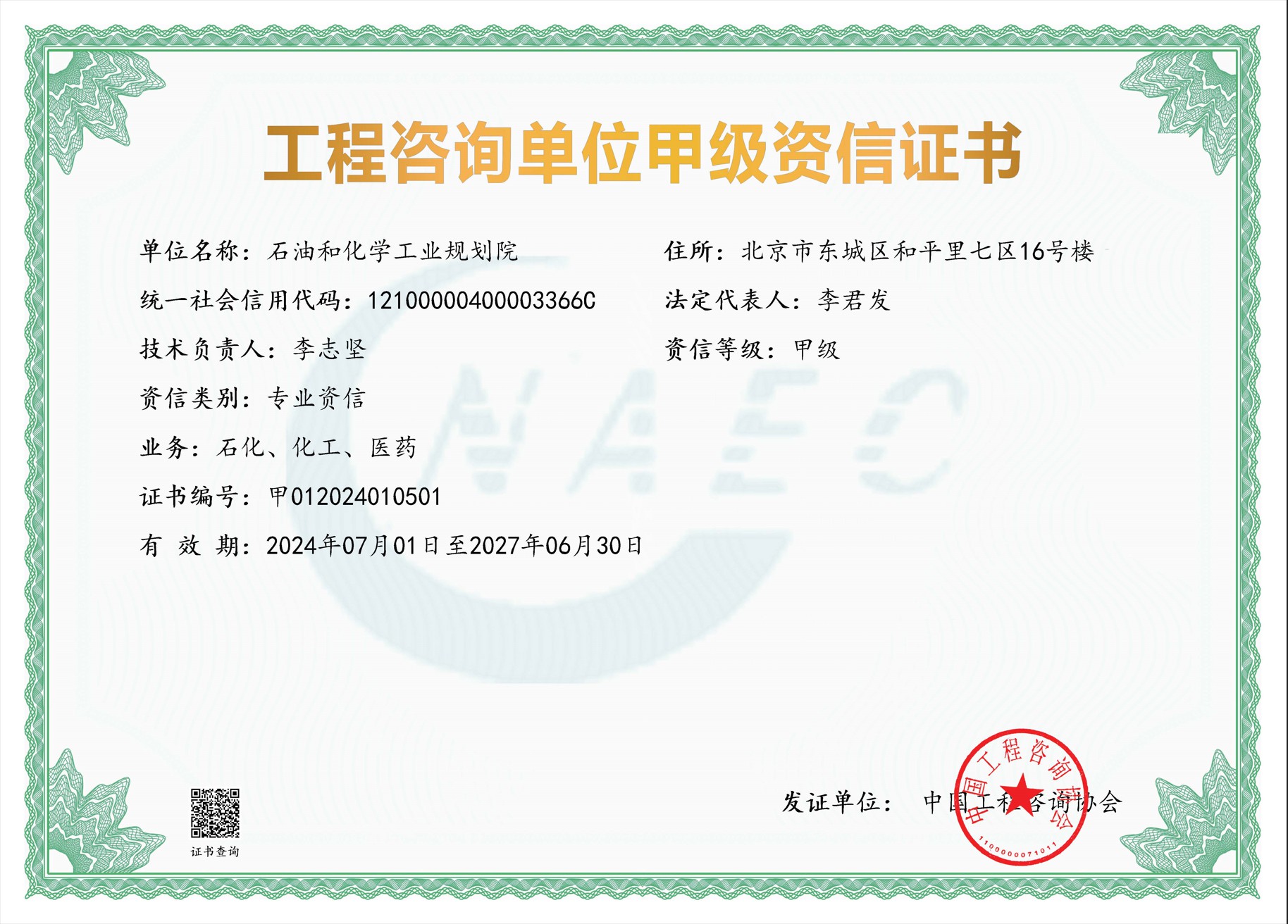 • 工程咨詢單位甲級資信